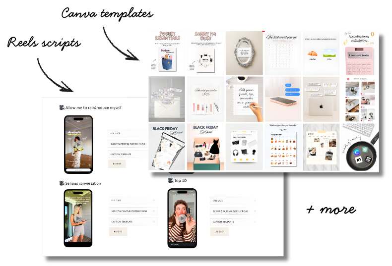 Get my monthly Canva post templates and Reels scripts designed to grow your following & sell
